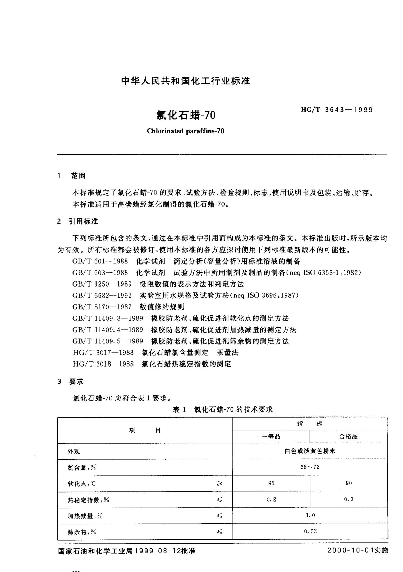 氯化石蠟行業(yè)標準HG-T3643-1999